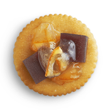 リッツにようかんを2個のせ、オレンジジャムをかける。