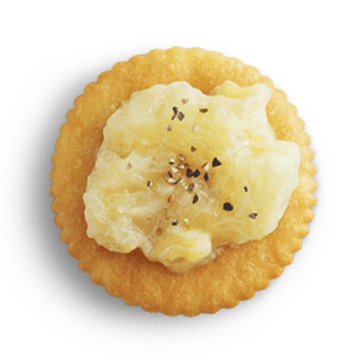 バナナを、スプーンですくってリッツにのせ、黒こしょうをふる。