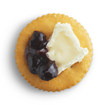 リッツにカマンベールチーズを1切れずつのせ、ブルーベリージャムを小さじ1/2ずつのせる。
