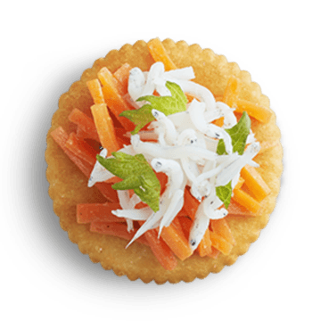 塩をまぶしたにんじんの水分はしっかり絞りましょう。調味料もよく馴染みますし、リッツが湿気ません。