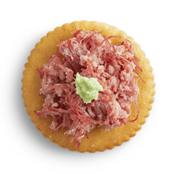 コンビーフの上に生わさびを少しずつのせる。