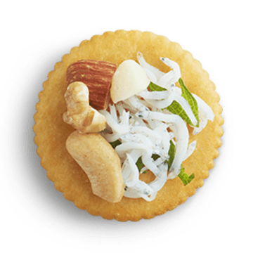 ミックスナッツのカリカリした食感とコクのある風味が、ふわふわのしらすとマッチします。