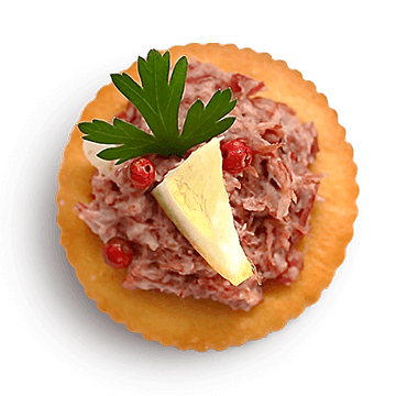 ビールにピッタリなお肉系ディップです。トッピングはレモンとイタリアンパセリ、ピンクペッパーで、彩りと味にアクセントを。