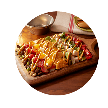 半分に割ったリッツ クラッカーと1を盛り付け、ドレッシングをかけて完成。