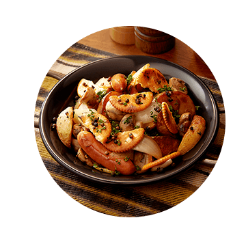 半分に割ったリッツ クラッカーを加えて軽く炒め、パセリを振って完成。